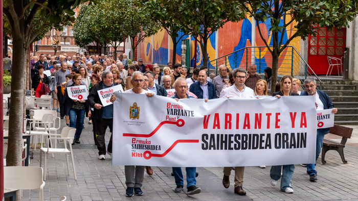 2023ko martxoan egindako manifestazio instituzionala, "Saihesbidea eta kitto" lemapean. Argazkia: Udala.