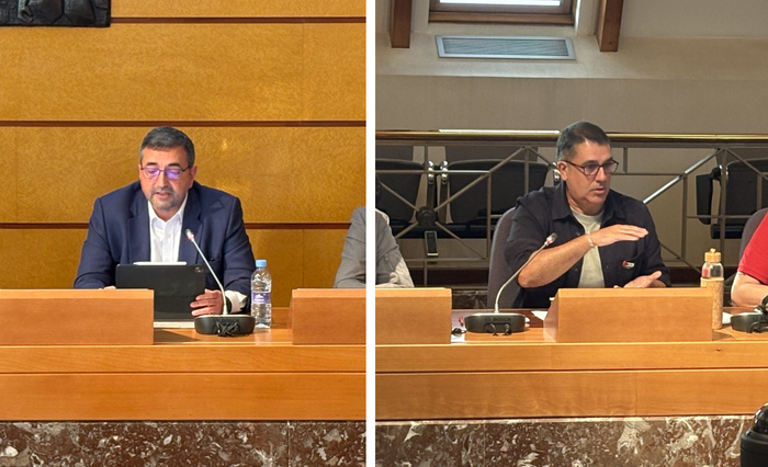 Alzaga eta Mendez atzoko batzarrean. Irudiak: BNN.