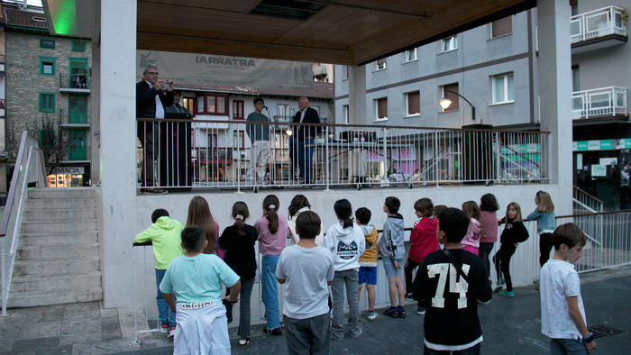 Mikrofonoa utzi eta kioskotik jaisterakoan, adi-adi entzuten egondako ume guztiak gerturatu zitzaizkion. Eskaileretan inguratu zuten eta banan-banan argazkia atera zuten hain gazte baina jada erreferente den ermuarrarekin.