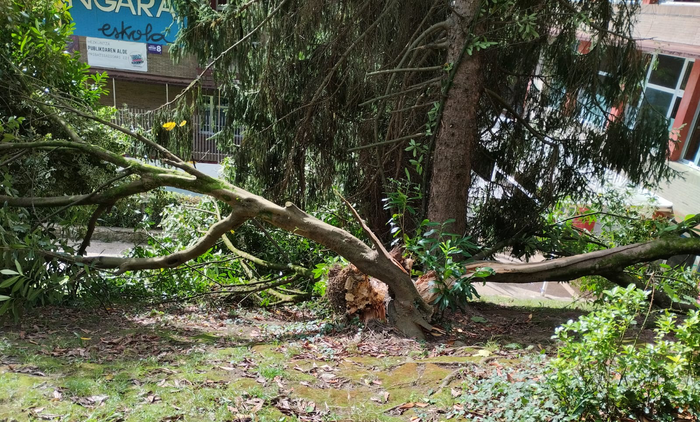 Iazko urrian haizeteak apurtutako zuhaitza, Ongarai eskolan. Argazkia: Nora Gaston.