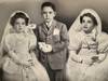 Jaunartzez jantzitako hirukotea