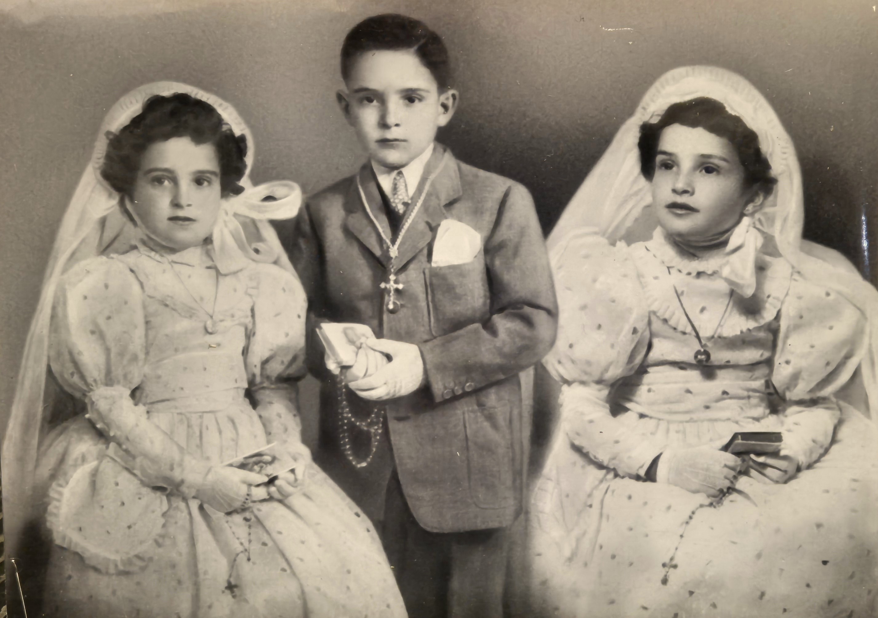 Eusebio Arregi eta Antonia Solozabal ziren haien gurasoak eta jaunartzea urte desberdinetan egin bazuten egin ere, atera zizkieten argazkiak koadro bakarrean batu zituzten.