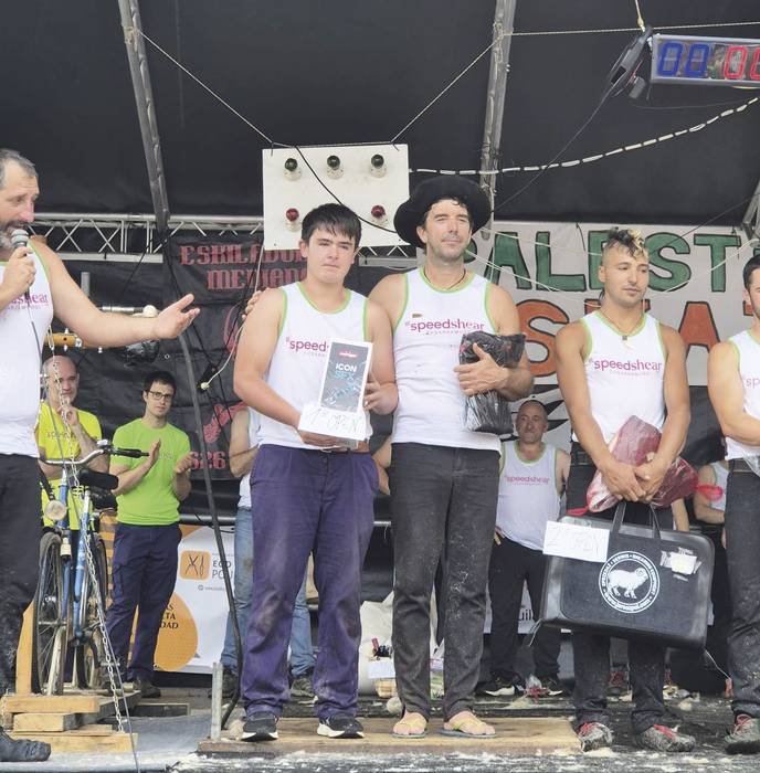 Semiek eta bixok artazixekin mozteko modalidadien jardun gendun III. SpedShear Zugarramurdi, bildots ilemozte txapelketan. Hamar parte-hartzaileren artien hirugarren egin neban. Baina polittena Aritzek, semiek lortu eban. Hasiera baten urduri ipini zan eta ez ebala parte hartuko be esan eusten, ardixe lotu barik ez dakixela mozten-eta. Baina lotute moztu leixela esan euskuen eta neuk lotu eta animatu zan azkenien. Plazagizona da eta lan politte egin eban. Open kategorixan Thimoleon Resneau frantziarrak lortu eban lehenengo postue eta sarixe jasoteran mikrofonotik esan eban berak txapelketa asko irebazi ditxule, eta pozgarrixe zala 17 urteko mutiko bat lan horretan ikustie, “jarraipena biher dabelako lan honek, nik irebazi dotena berai (Aritzi) emon biher deutset” esan eban… Aritzi emon eutsen bere sarixe eta pentsaukozu zelan euen Aritz, nun sartu ez ekixela, ama negarrez pozik, ni semiaz oso harro... Ardi moztaile mundu honek jarraipena eukittie nahi dabela erakutsi eban Thimoleon Resnauk, hor ikusten da ze eratako pertsonie dan.