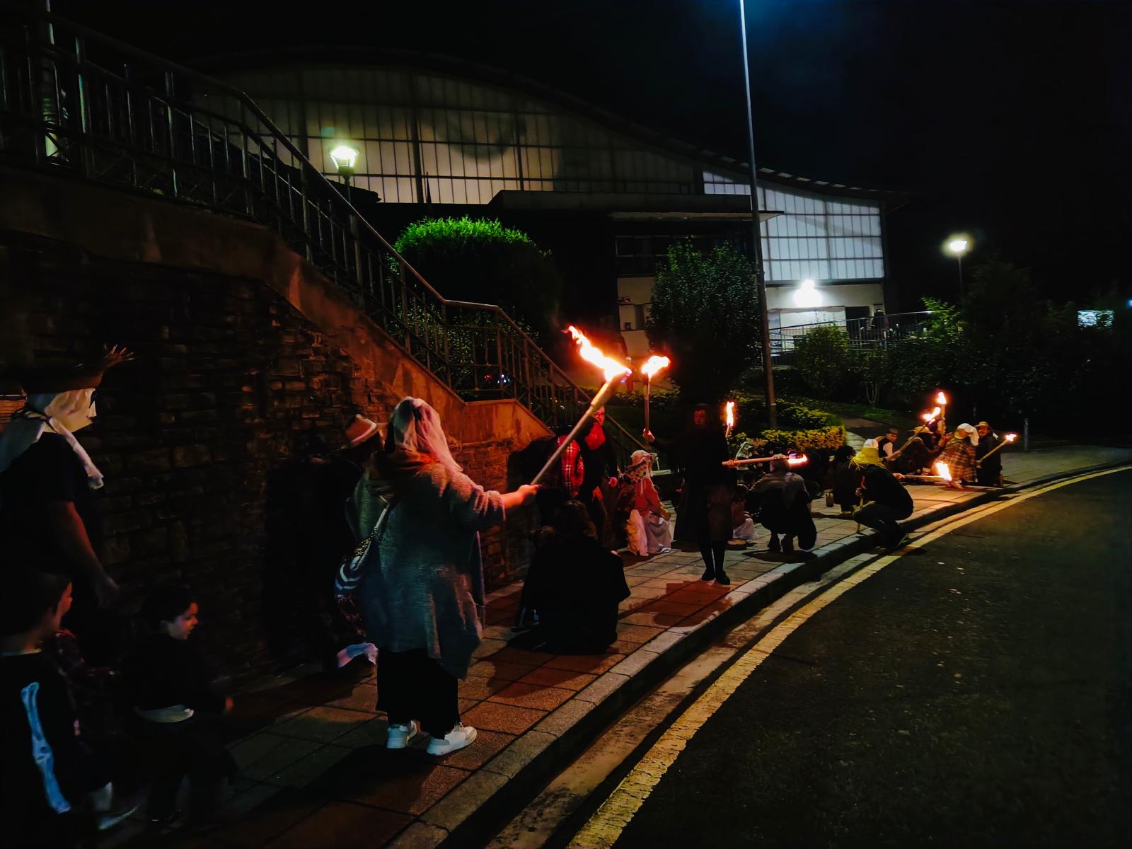 Astean zehar, eskolako ikasleek egindako apaingarriekin jantzi dituzte dendetako erakusleihoak, osasun zentroa eta liburutegia. Antolakuntzatik azaldu dutenez, "oso lan polita" egin dute, eta herritar guztiak gonbidatu dituzte erakusketa beldurgarri bezain eder hauek bisitatzera: