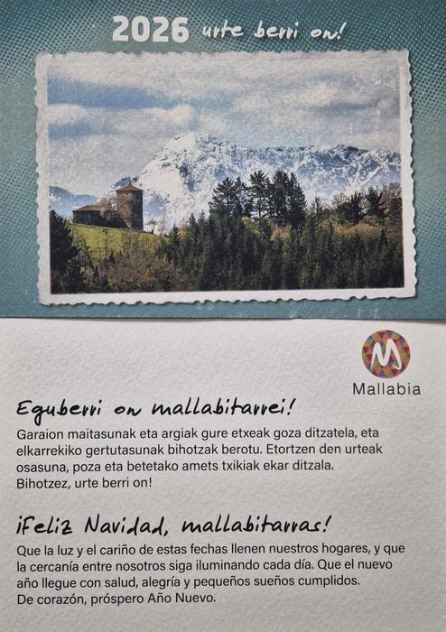 Mallabiko udalak Fernan Alonsoren argazki bat du irudi, Bidarteko San Pedro baseliza Arandoño auzotik ikusita eta atzean elurtutako Anboto mendia ikusten delarik. Honekin batera egutegi bat ere banatuko da, herriko argazki zahar eta berriez osatutakoa.